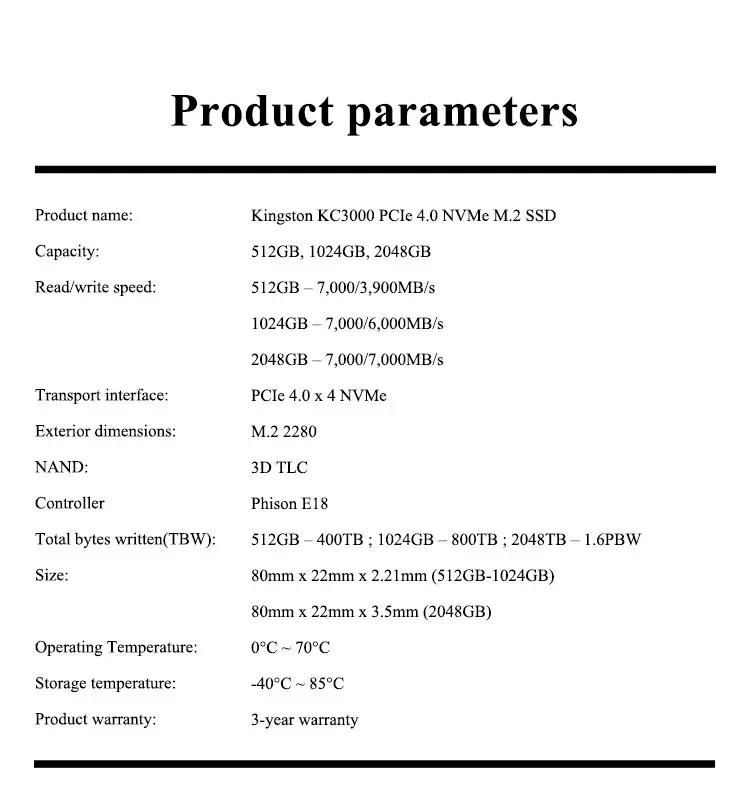 SSD M2 Nvme M.2 2280 PCIe 4.0 X4 KC3000 1024GB 512GB 1TB 2TB Internal Solid State Drive PS5 Desktop Hard Drive