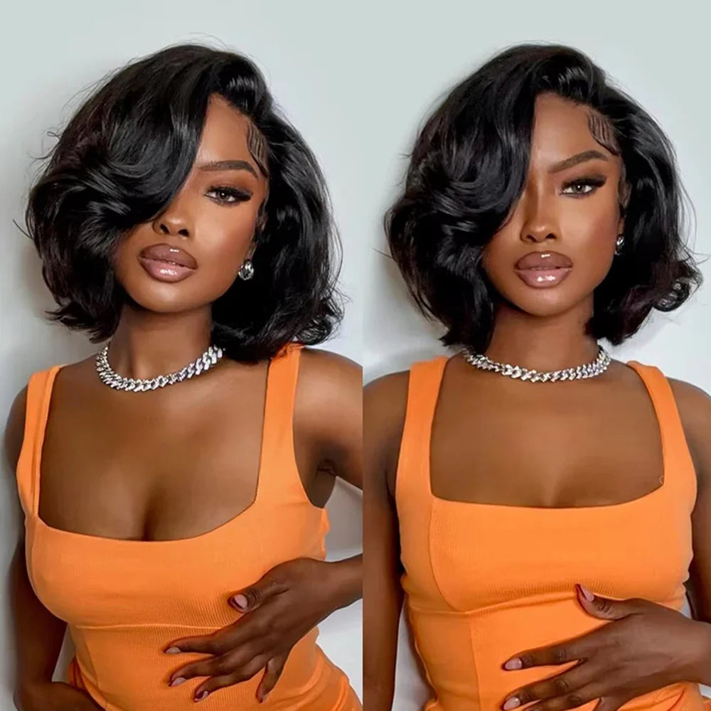 Glueless Body Wave Bob Wigs 13x6 Transparent Lace Frontal Wig 100% Human Hair Wig Natural Wave Short Bob Wigs of Black Women