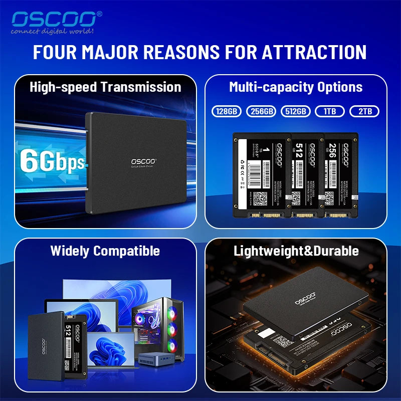 Transform your computing experience with OSCOO high-speed, high-capacity 2.5-inch SATA3 SSD, OSC-SSD-002. Elevate your system's performance, unlock new possibilities, and embrace the future of storage technology.