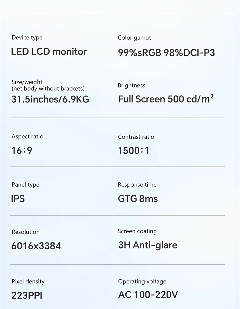 With a 6016x3384 ultra-high-definition screen resolution for doubled clarity,and 218 PPl pixel density that brings every frame to life.