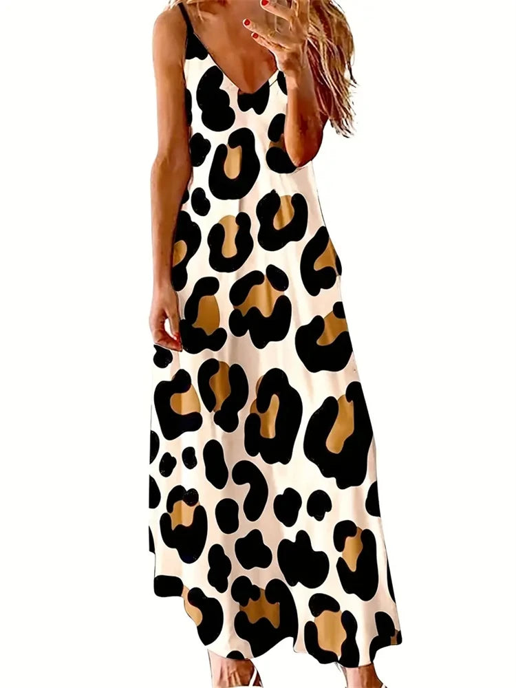 Abstract Print Maxi Dress, Casual Sleeveless Spaghetti Strap Dress, Women's Clothing