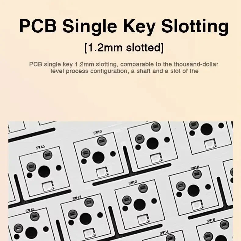 PCB single key 1.2mm slotting, comparable to the thousand-dollar level process configuration,the design is better optimized for consistency, and at the same time can ensure some soft play.