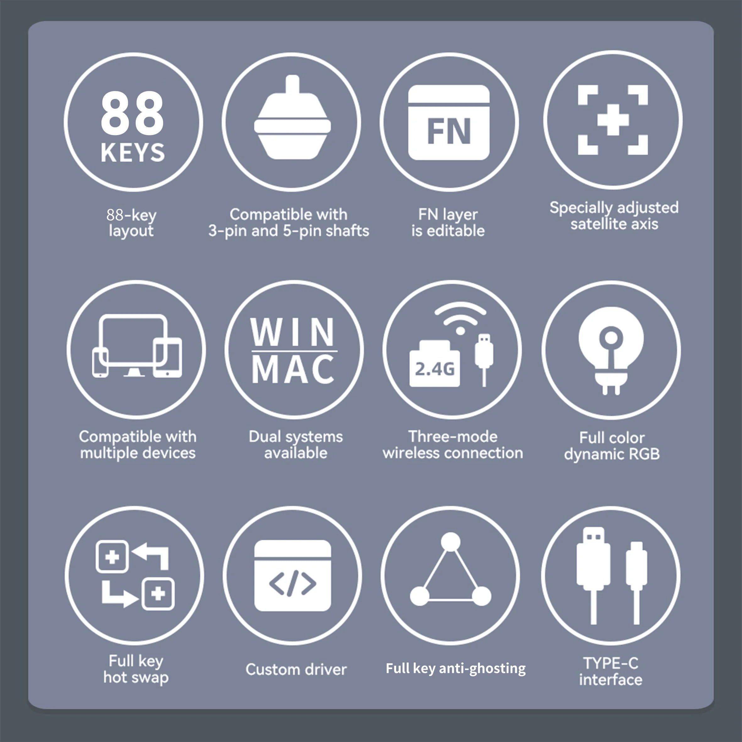 【Hot-Swappable & Fully Customizable】Compatible with both 3-pin and 5-pin mechanical switches, no soldering needed. With driver support, remap keys, set macros, and personalize lighting modes to fit your gaming or workflow style.