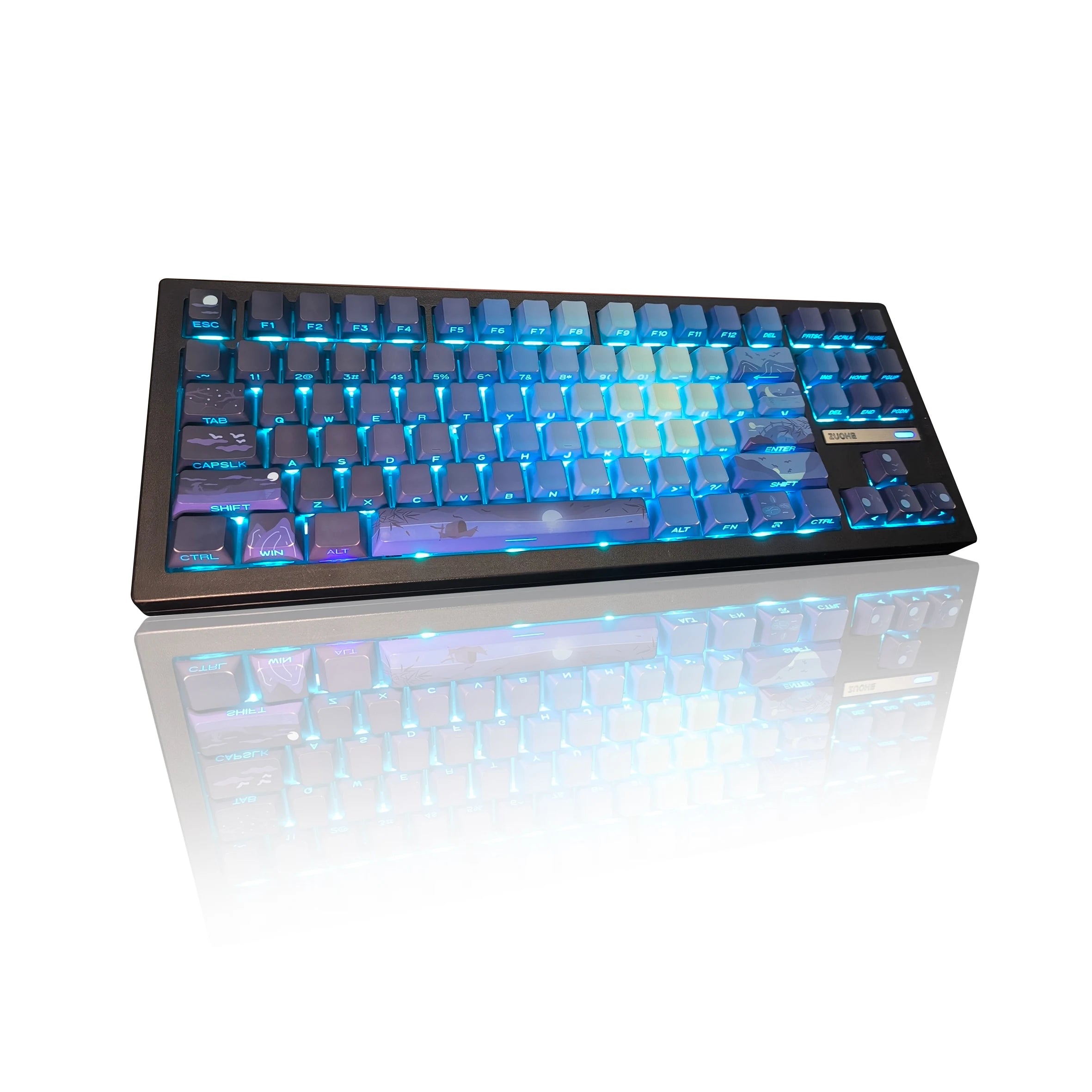 【5 Side Dye Sublimation Keycaps with Clear Legends】Crafted from high-purity PBT with Dye Sublimation technology, the keycaps resist shine and wear while featuring a Sea Moonlight theme that glows with RGB. Side-printed, molded legends ensure long-term clarity and smooth light diffusion.