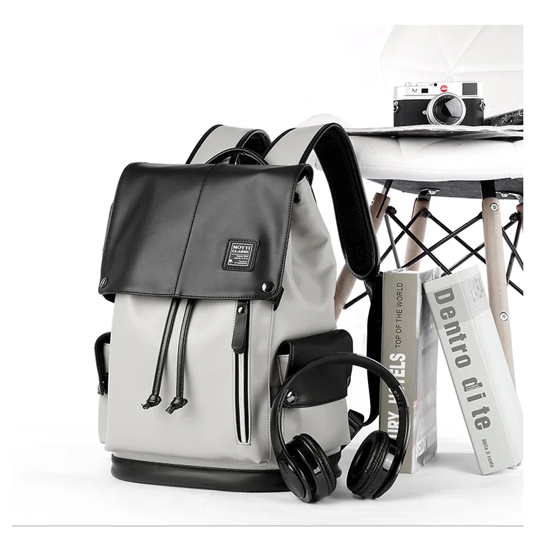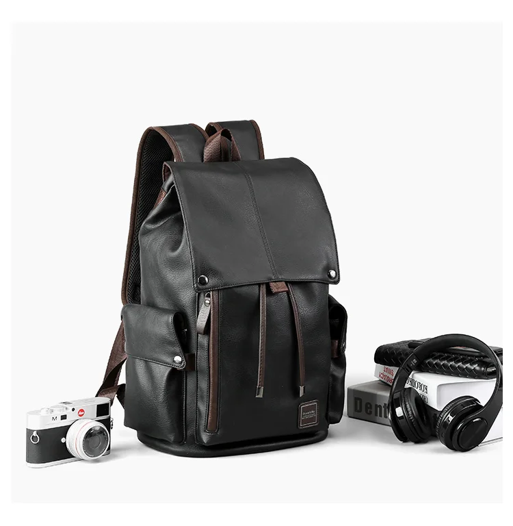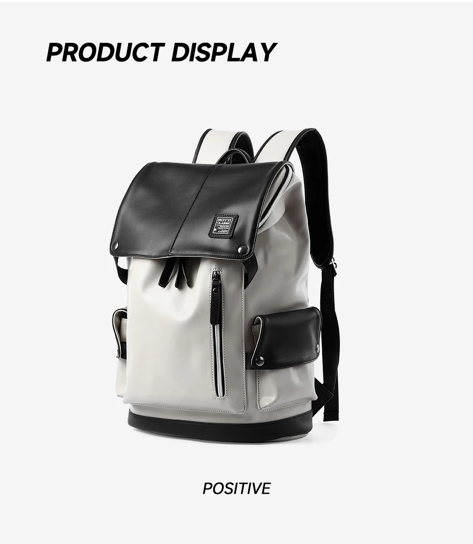 Leather Men Backpack, Vintage 15.6 inch Laptop Daypack, Waterproof Durable Travel Knapsack, College Student Leather Rucksack
