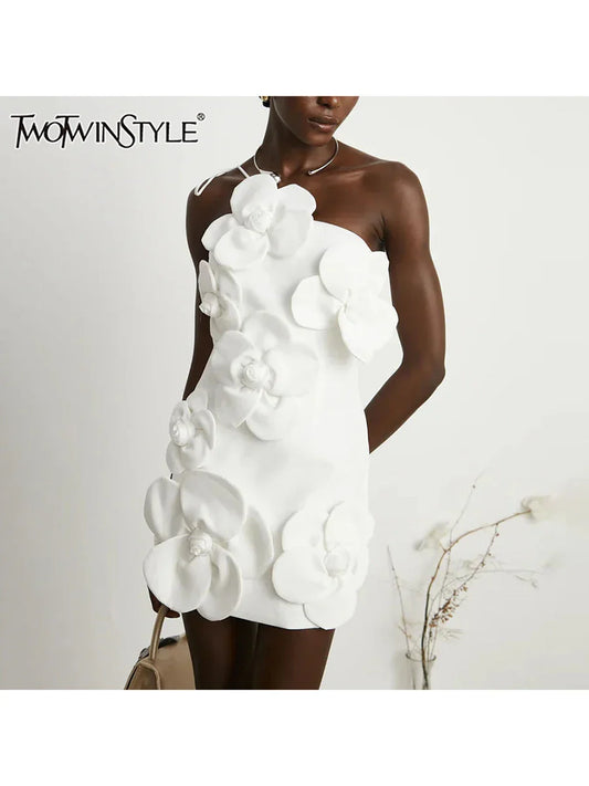 Patchwork Appliques Mini Dresses Diagonal Collar