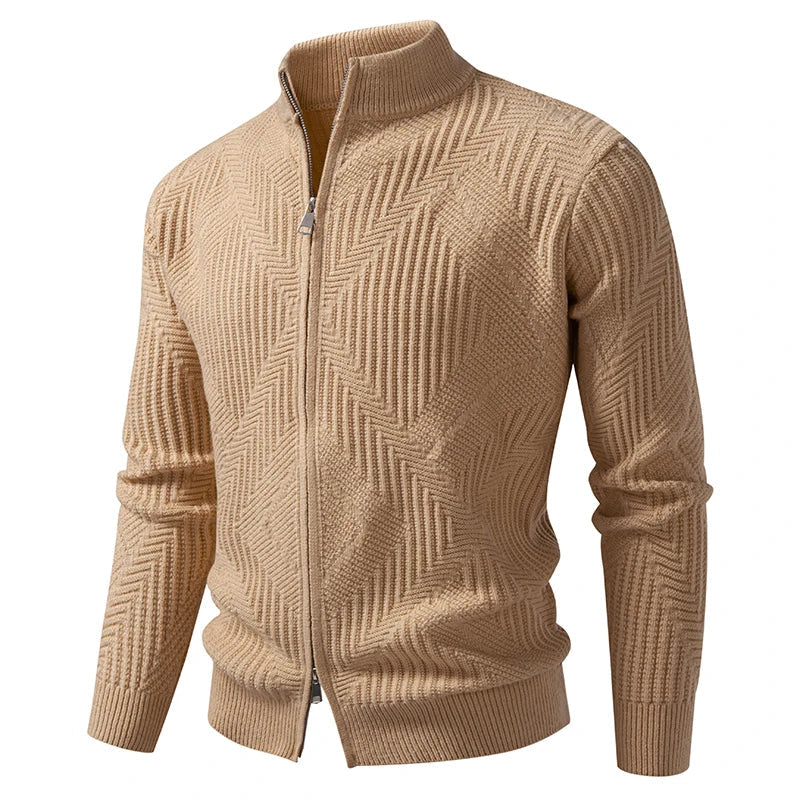 Autumn Winter Stand Collar Knitted Sweatercoat Men Fashion Solid Color Geometric Knit Cardigan Mens Casual Sweater Jacket Coat