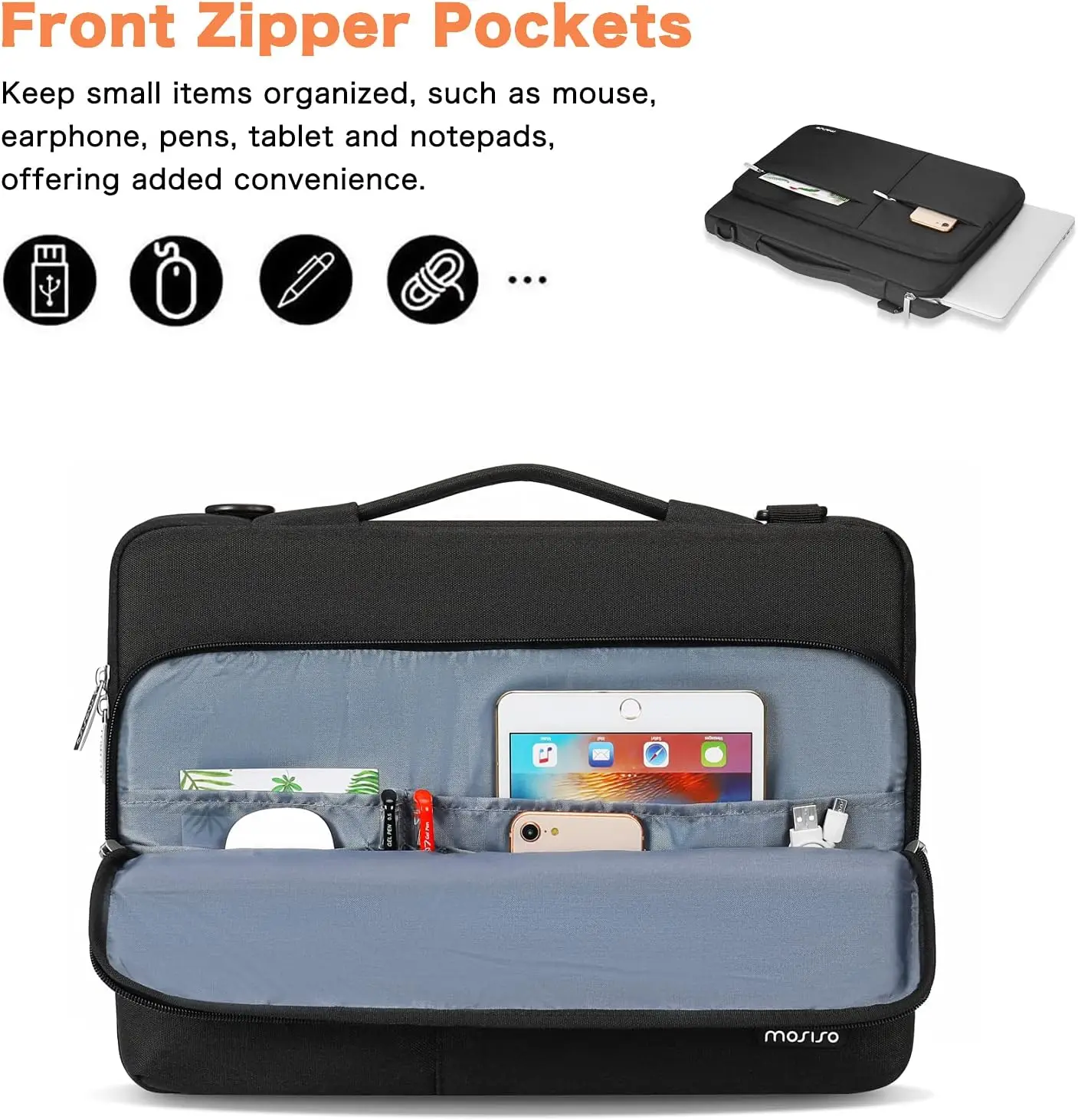 The main inner compartment for holding laptop. Three front pockets is convenient for you to keep small items well-organized, such as tablet, books, cell phone, pens, wallet, keys and other small accessories, offering added convenience. Multifuncional laptop shoulder messenger bag enables you to carry your laptop/notebook/ultrabook computer in a uniquely sleek style.
