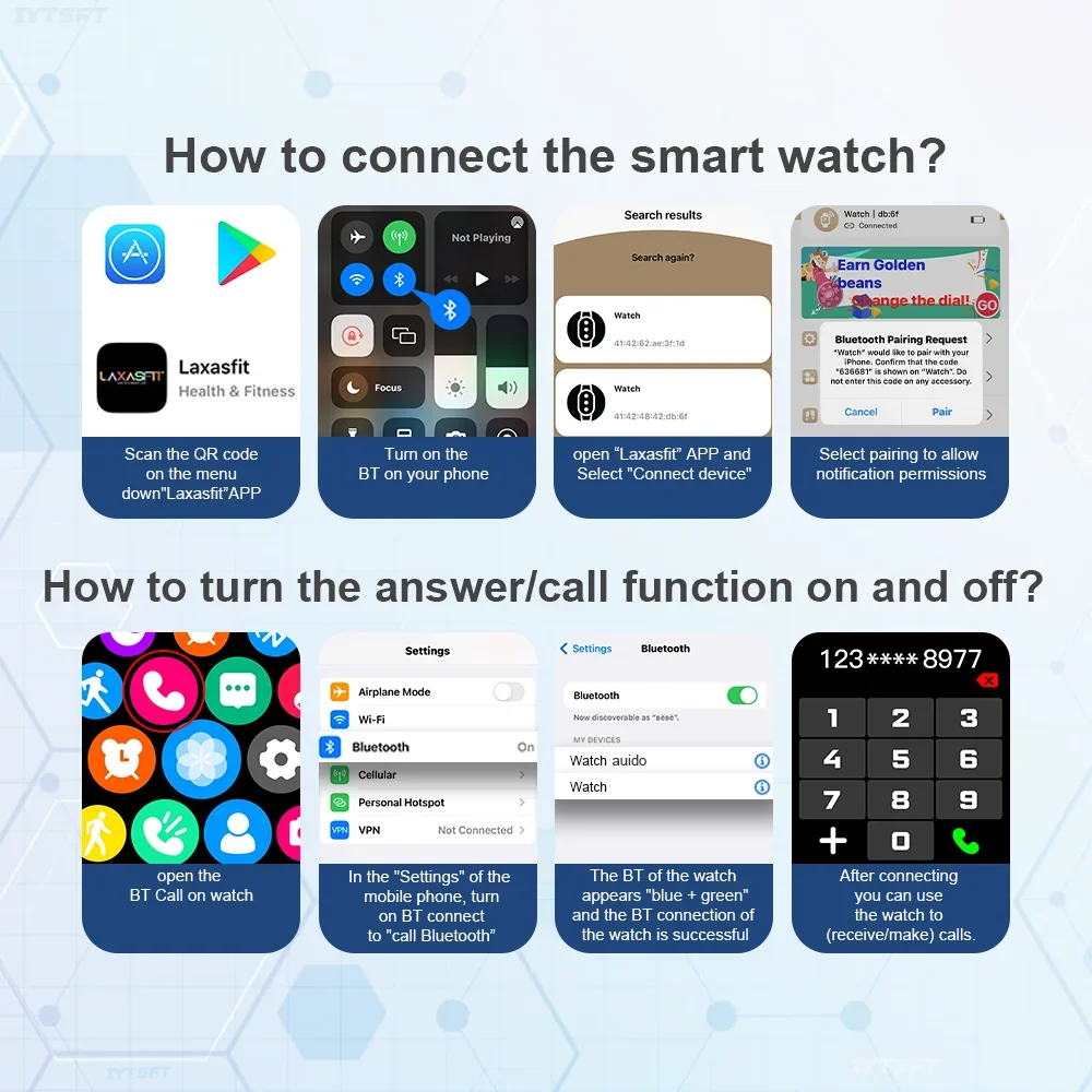 A: Open the Bluetooth of your cell phone, open the installed APP, search for the corresponding model of the watch's and connect it directly in the APP, and then connect the Bluetooth of your cell phone.