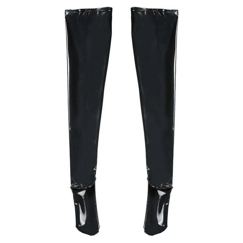 3XL Plus Size Wetlook PVC Leather Thigh High Stockings Gothic Punk Reflective Shiny Pole Dance Night Club Party Lingerie