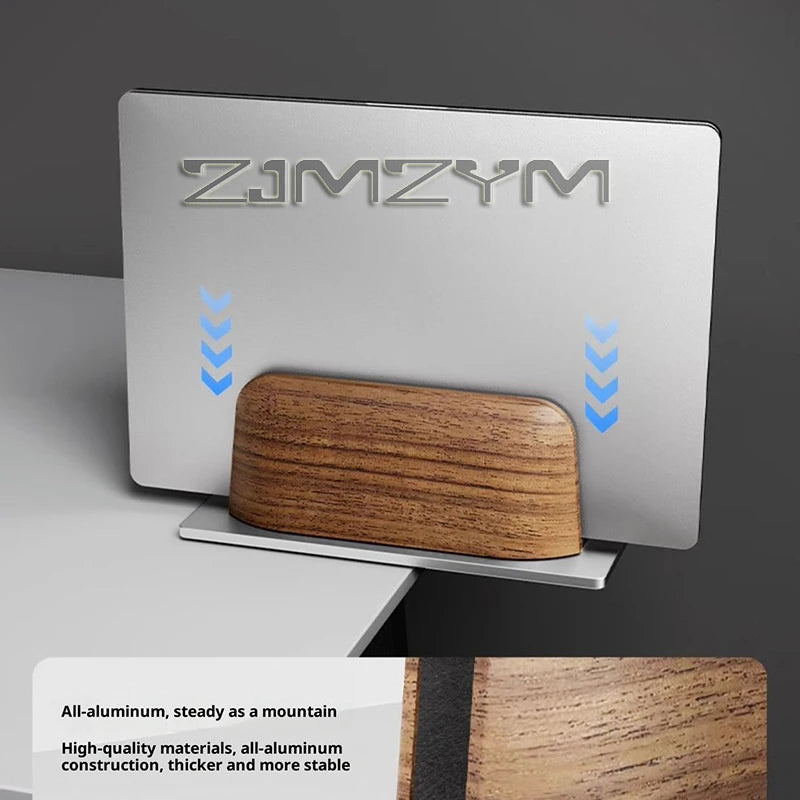 Vertical Laptop Stand, Black Walnut Wood Desk Laptop Holder, Laptop Docking Station Stand for MacBook, Tablet, Phone - Universal