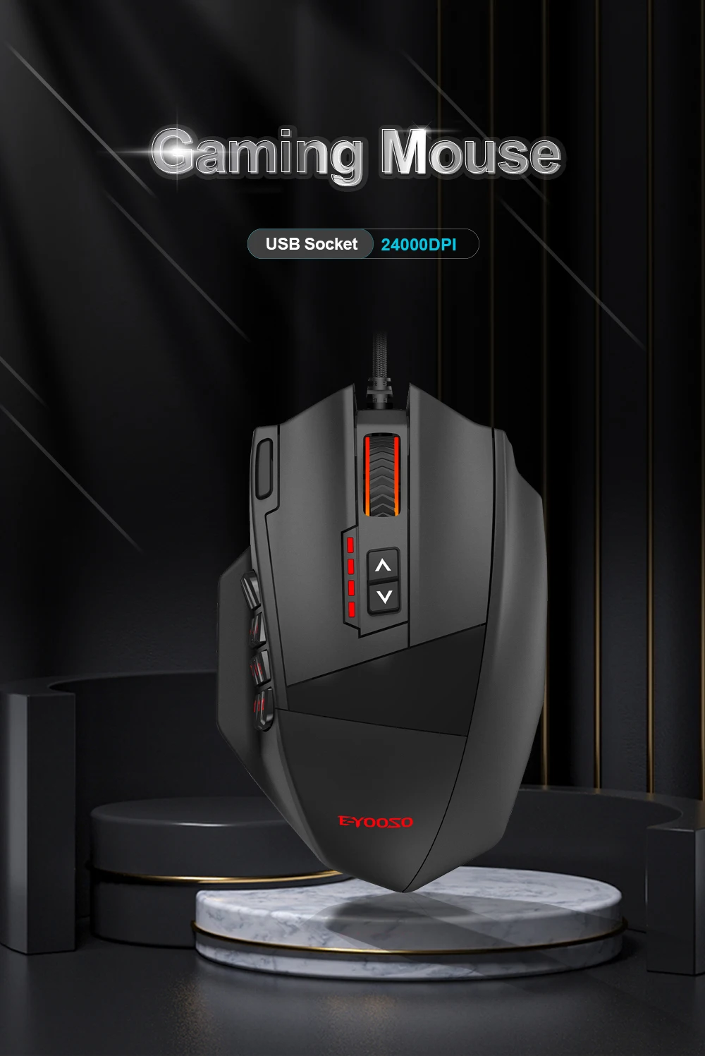 『SENSITIVE DPI MMO MOUSE』Focus on MMO gamers: this professional MMO gaming mouse built-in up to 24000 DPI, 1000 Hz polling rate, 80G acceleration, 100-150in/s cursor speed, and a high precision Avago sensor. It has an adjustable sensitivity level (range from 400 - 24000) built right into the gaming mouse. You can easily adjust the mouse sensitivity using buttons on the mouse. Great micro switches provide crisp, firm clicks.