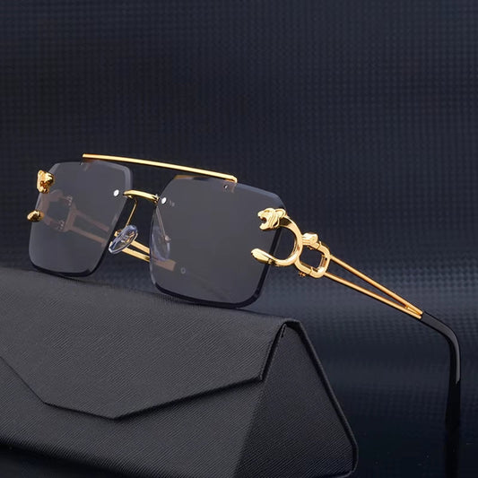 Fashion Metal Leopard Rimless Sunglasses - Stylish Gradient Ocean Film Shades UV400