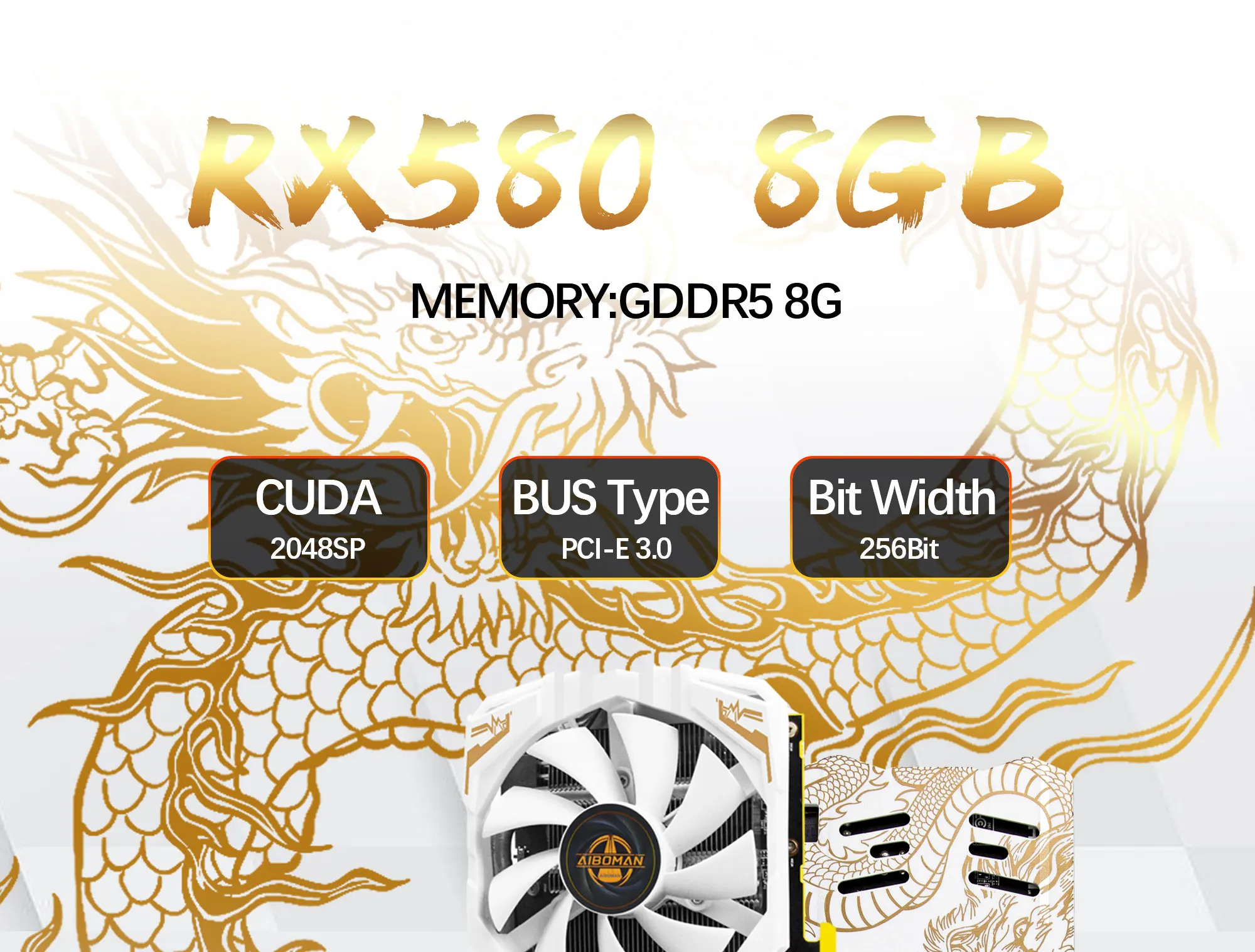 AIBOMAN Video Card AMD RX580 8GB Graphics Card GDDR5 256Bit 2048SP Dragon Series Gaming Video Cards Desktop Computer component