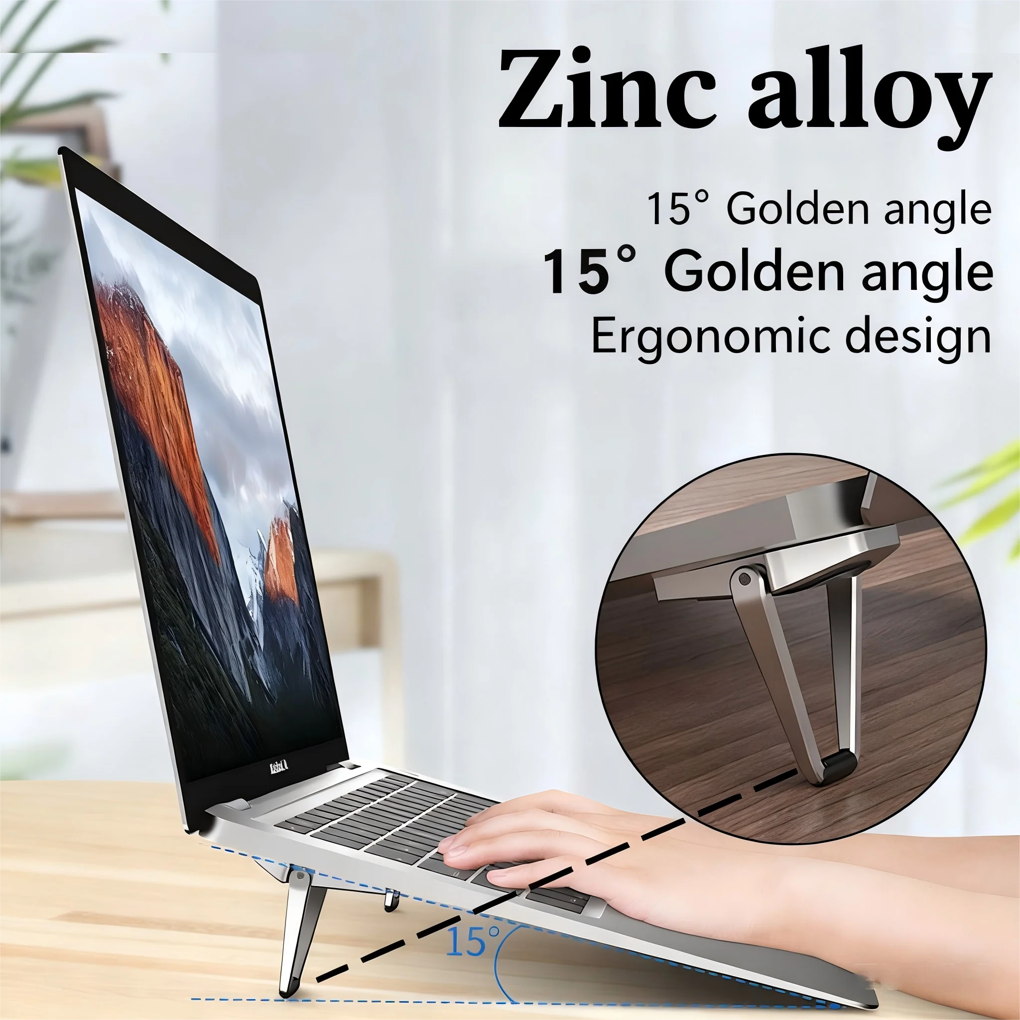 A pair of zinc alloy laptop invisible stands, mini portable desktop height-increasing cooling foldable support frames