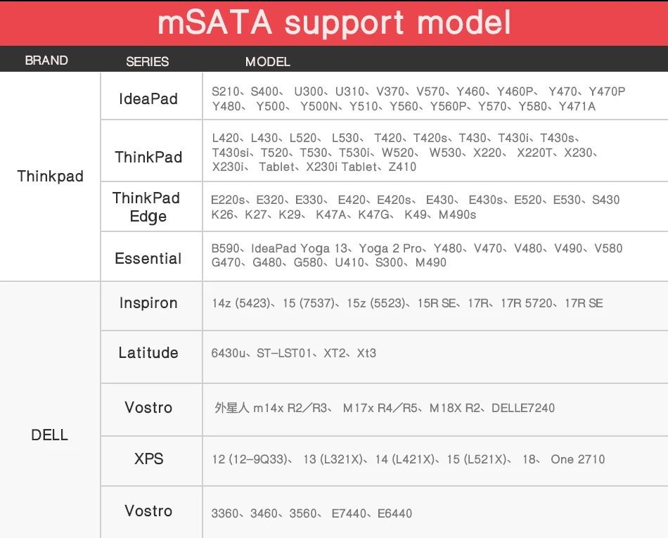 Application for below Laptops if your laptop with mSATA interface: