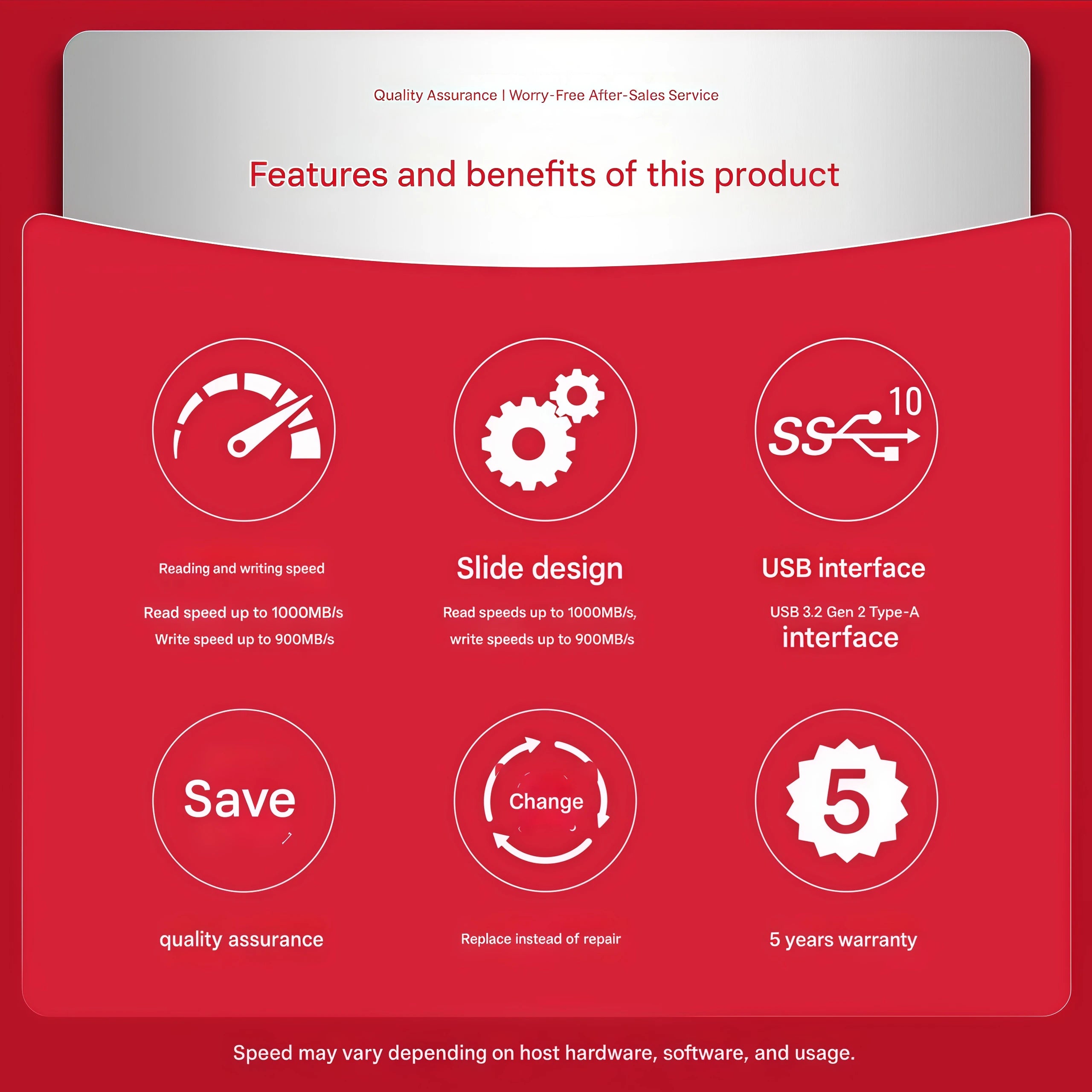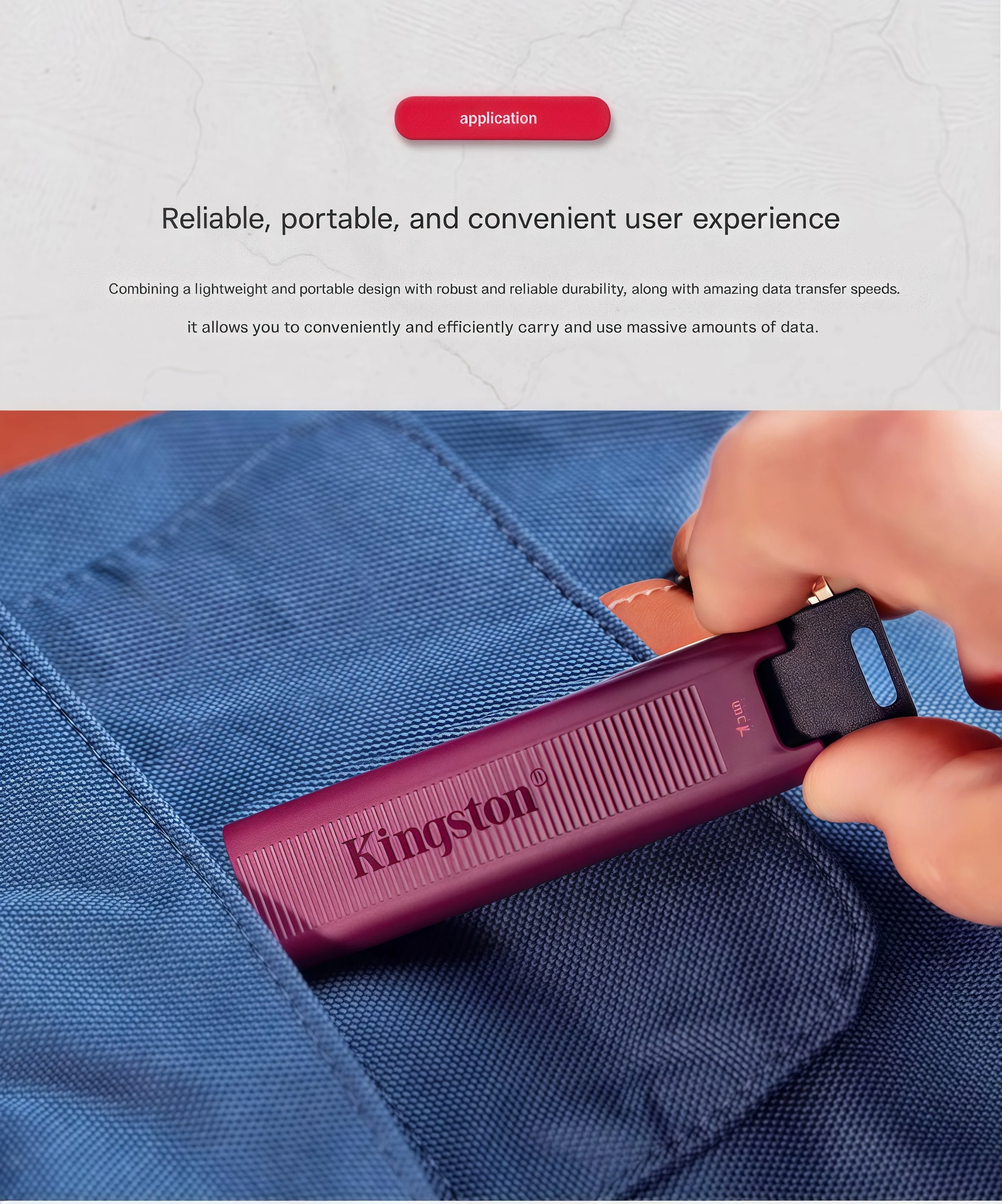 Kingston USB 3.2 SSD flash drive, high-speed transfer, large capacity. [USB 3.2] Read speed 1000MB/s, Write speed 900MB/s.