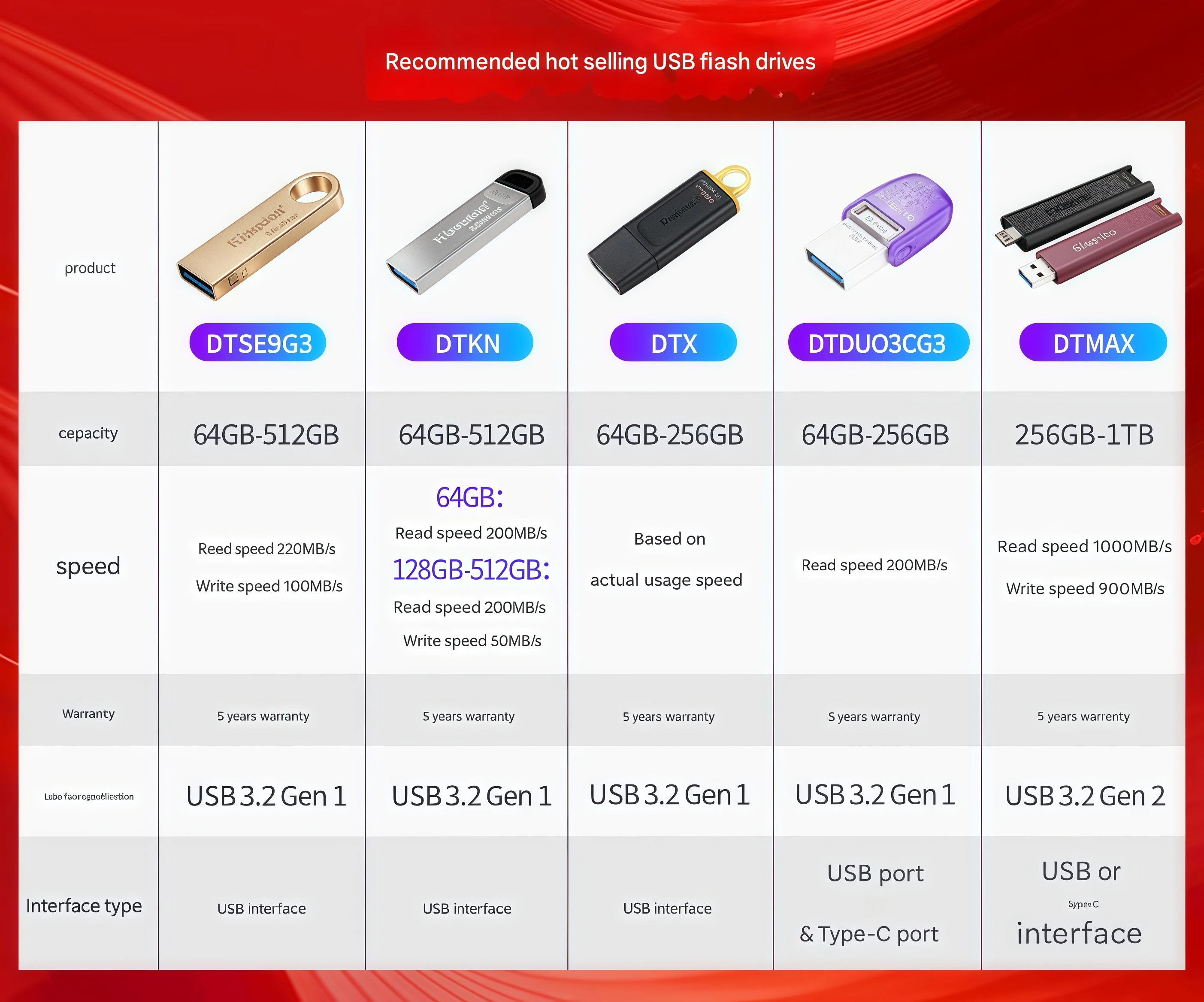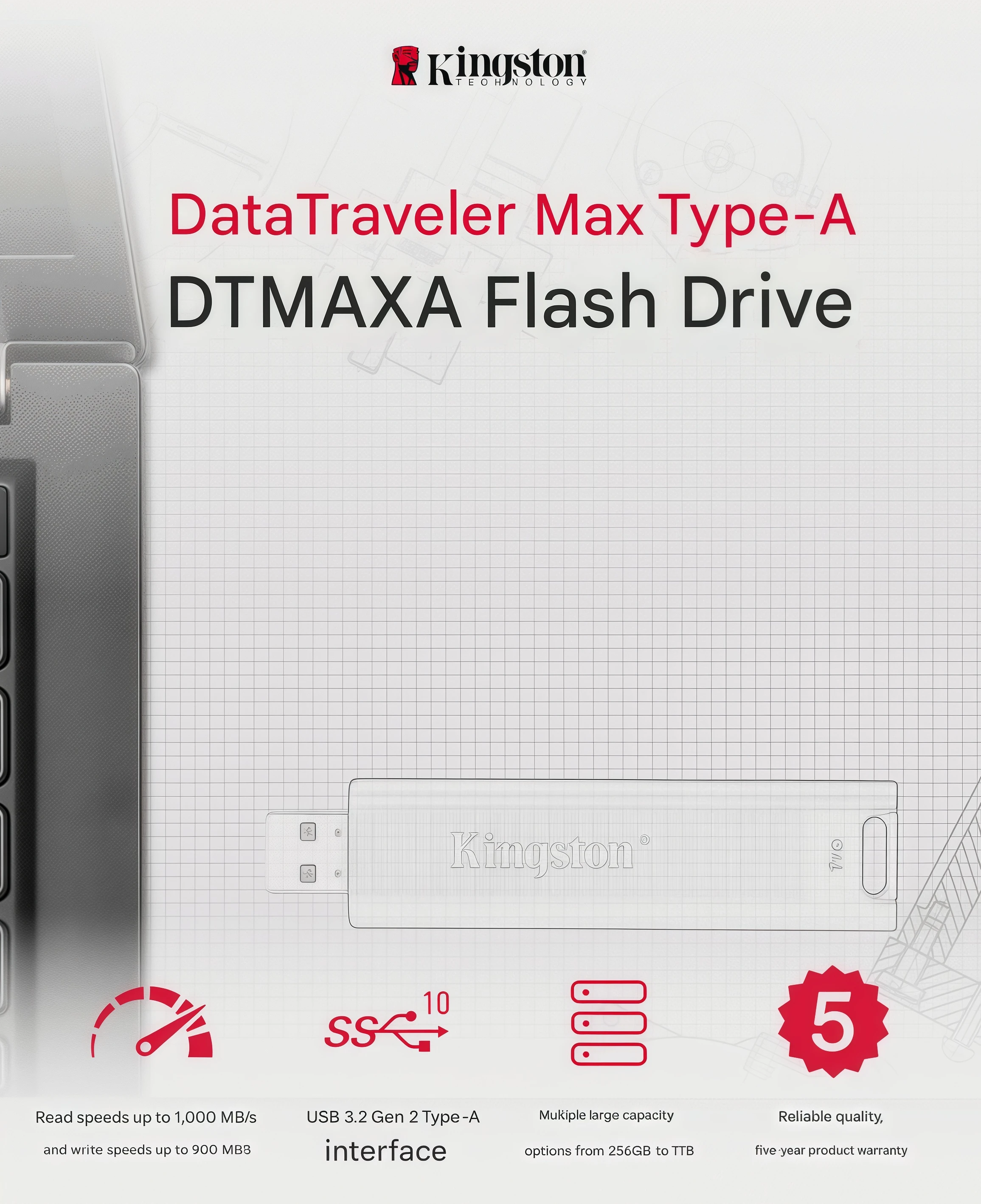 Both the Type-C and Type-A connector varieties in the DT Max series are backed by a limited five-year warranty, free technical support and legendary Kingston reliability.