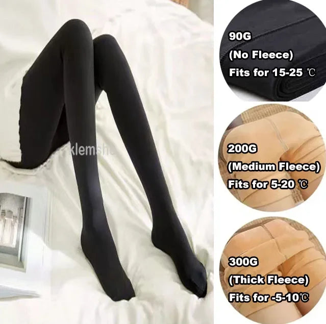 Women Thermal Leggings Winter Warm Sexy Elastic Translucent Pantyhose Female Fleece Thermal High Waist Slim Thicken Tight Pants