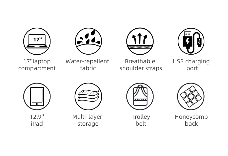 Perfect for business travelers, it combines ample storage, a sleek business aesthetic, and smart functionality to keep you organized and prepared for any trip.